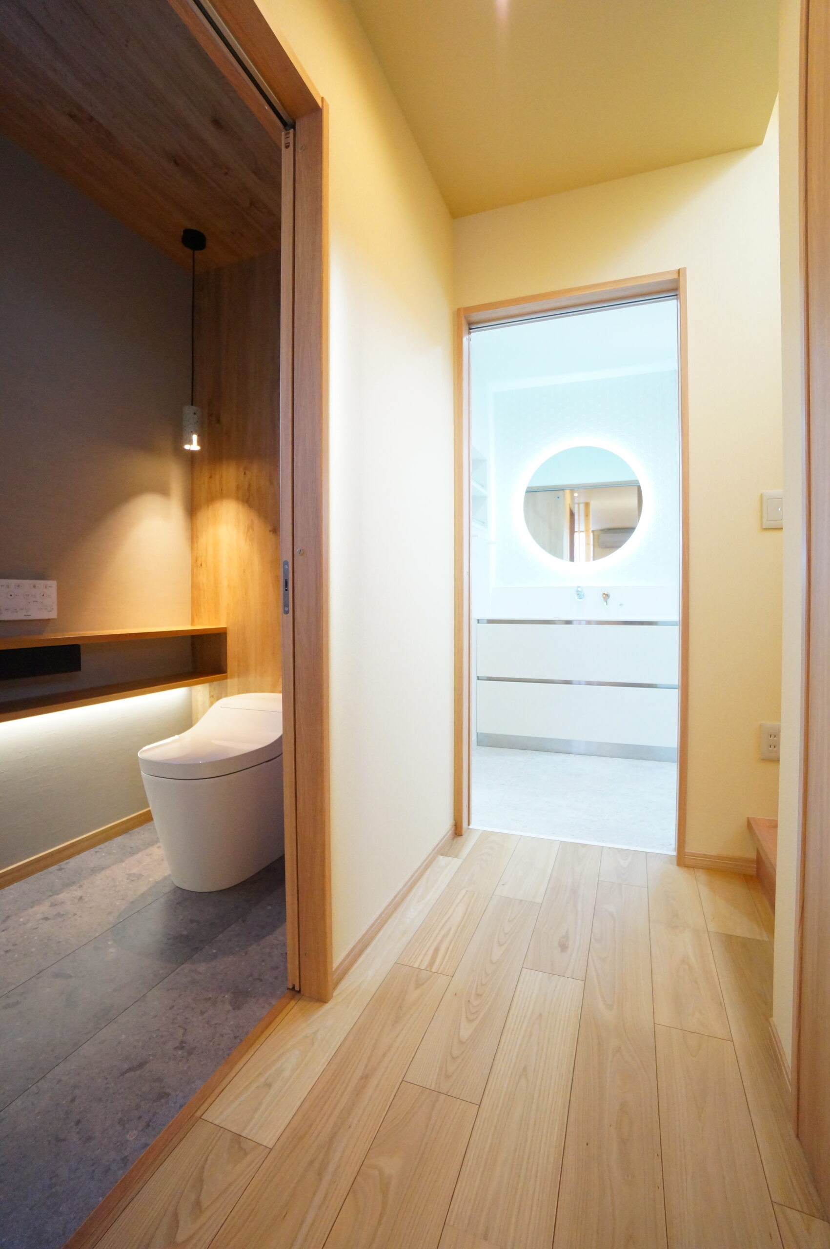 落ち着いた壁色を採用し、