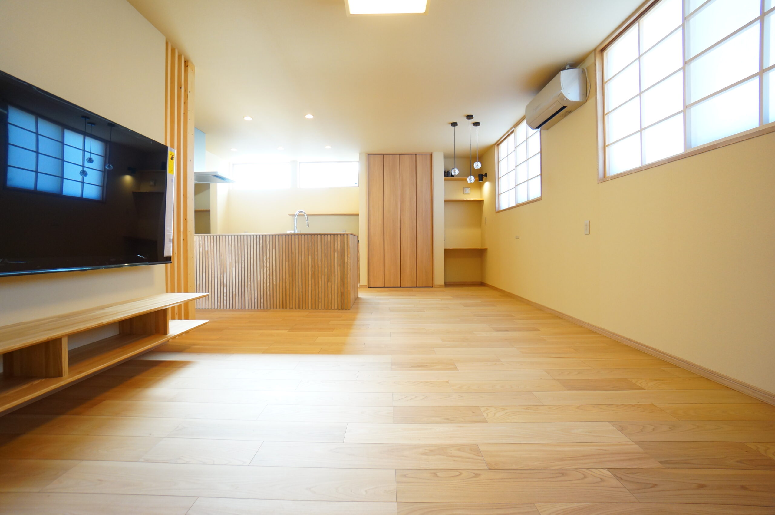 古材を引き継ぐ漆喰と杉板張りの平屋